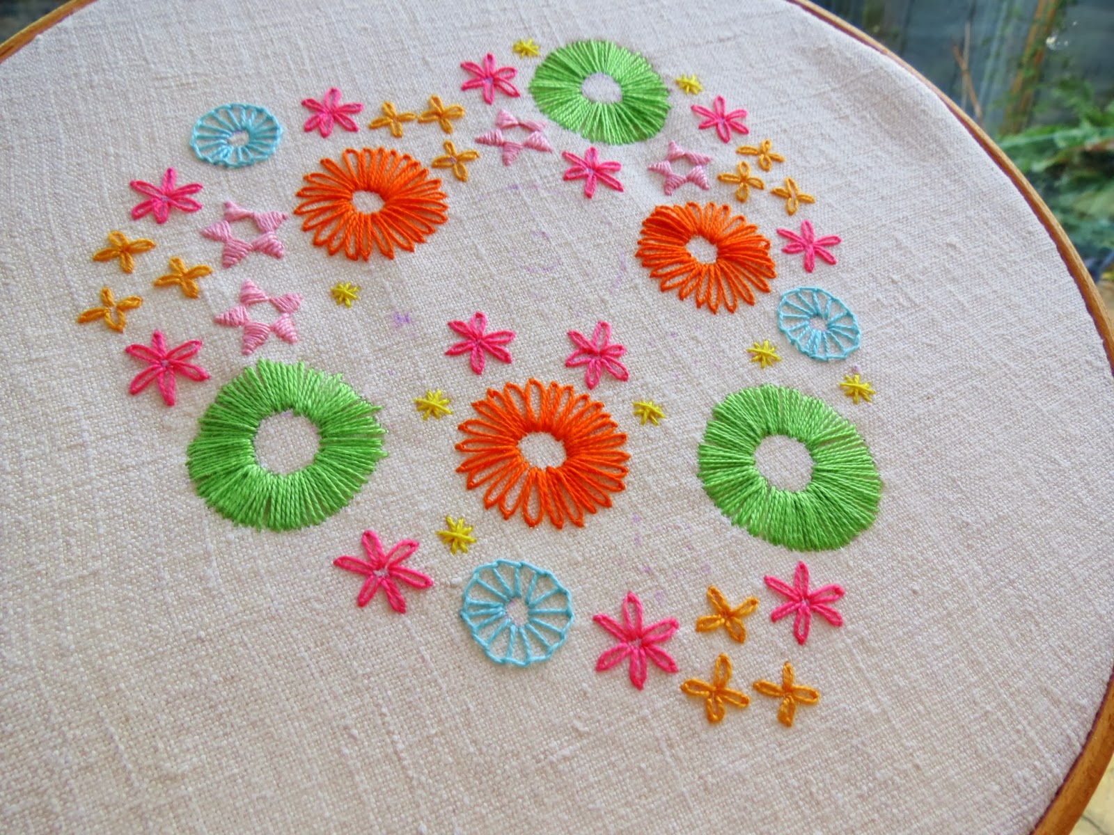 Being new to crochet these are the first thing I have made all by myself following a pattern, which I found here. Now do not look to closely as some of them have 6 petals rather than the correct 5 and the cotton yarn splits ever so easy, but I love them all the same......